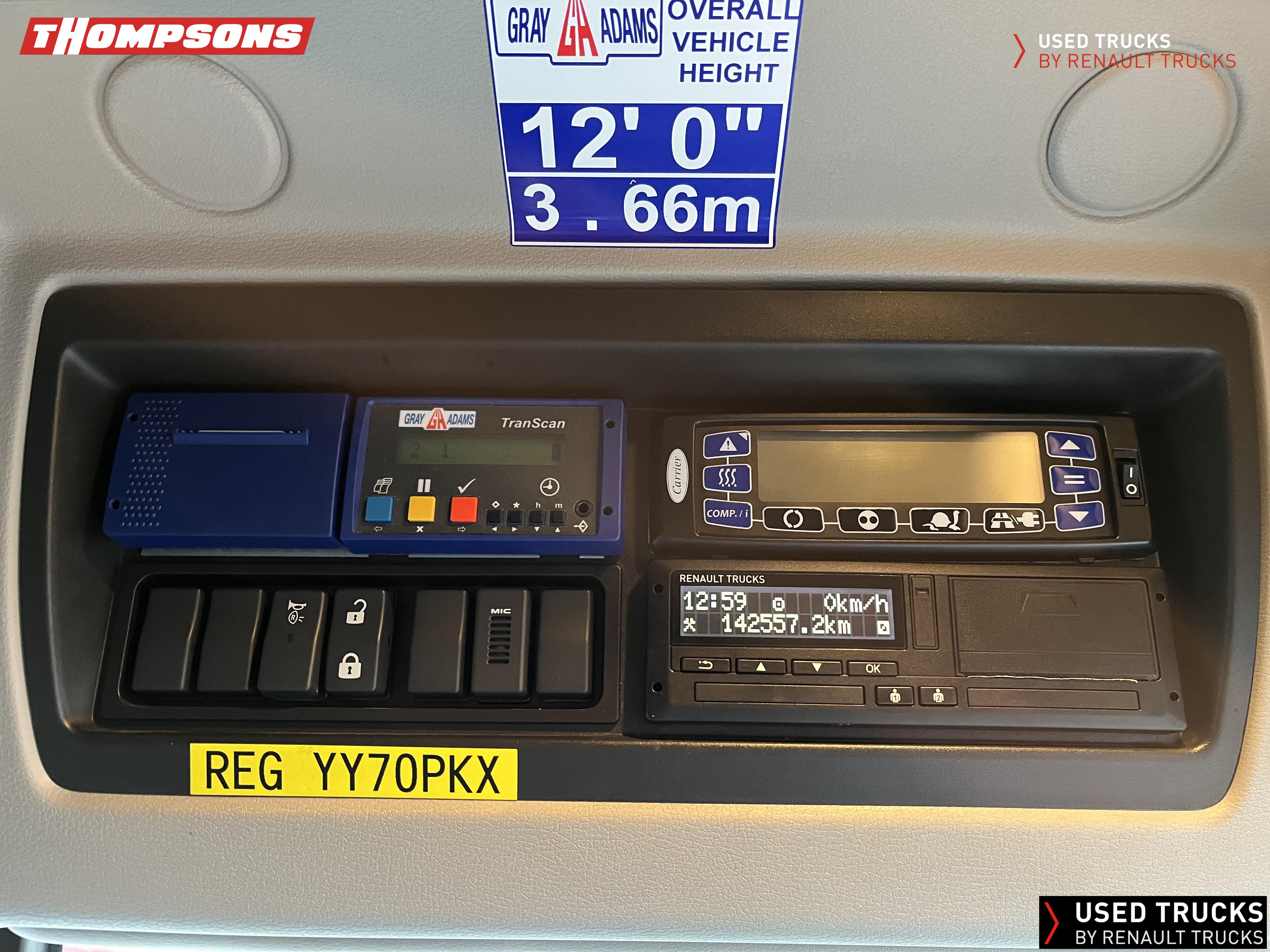 Renault Trucks D240 12 t. Single Bunk Rest Cab, Automatic Gearbox, Fitted with Grey & Adams Refrigerated Body. Carrier Supra Chiller Unit, Side Door, Rear Barn Doors, Internal Moveable Divide. Dhollandia Tuck Away Tail Lift. Clean Truck Supplied with 6 Months Driveline Warranty and a new 12 months MOT