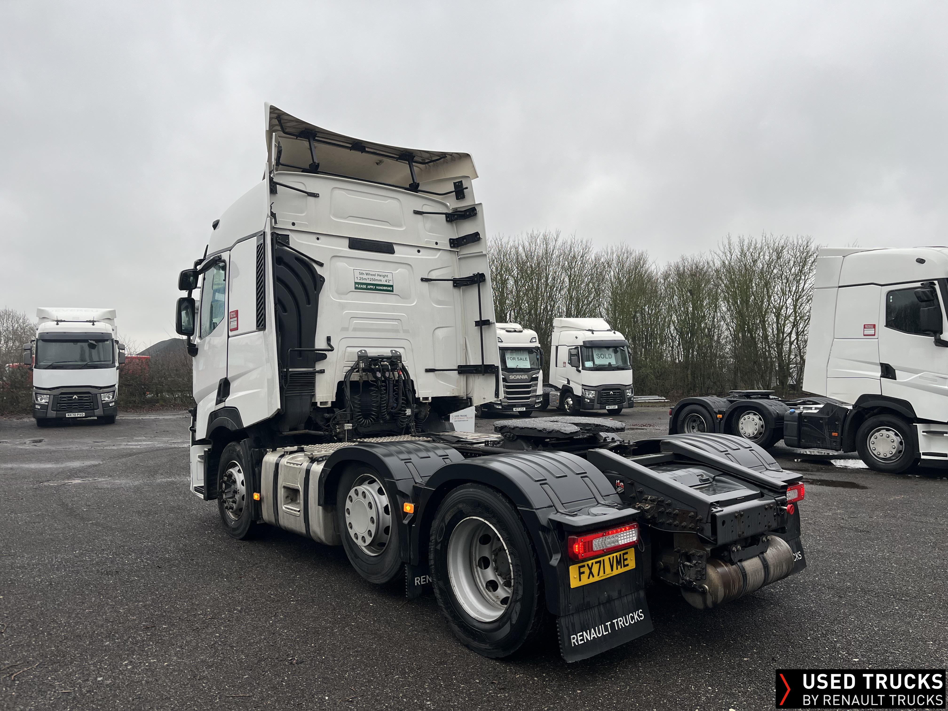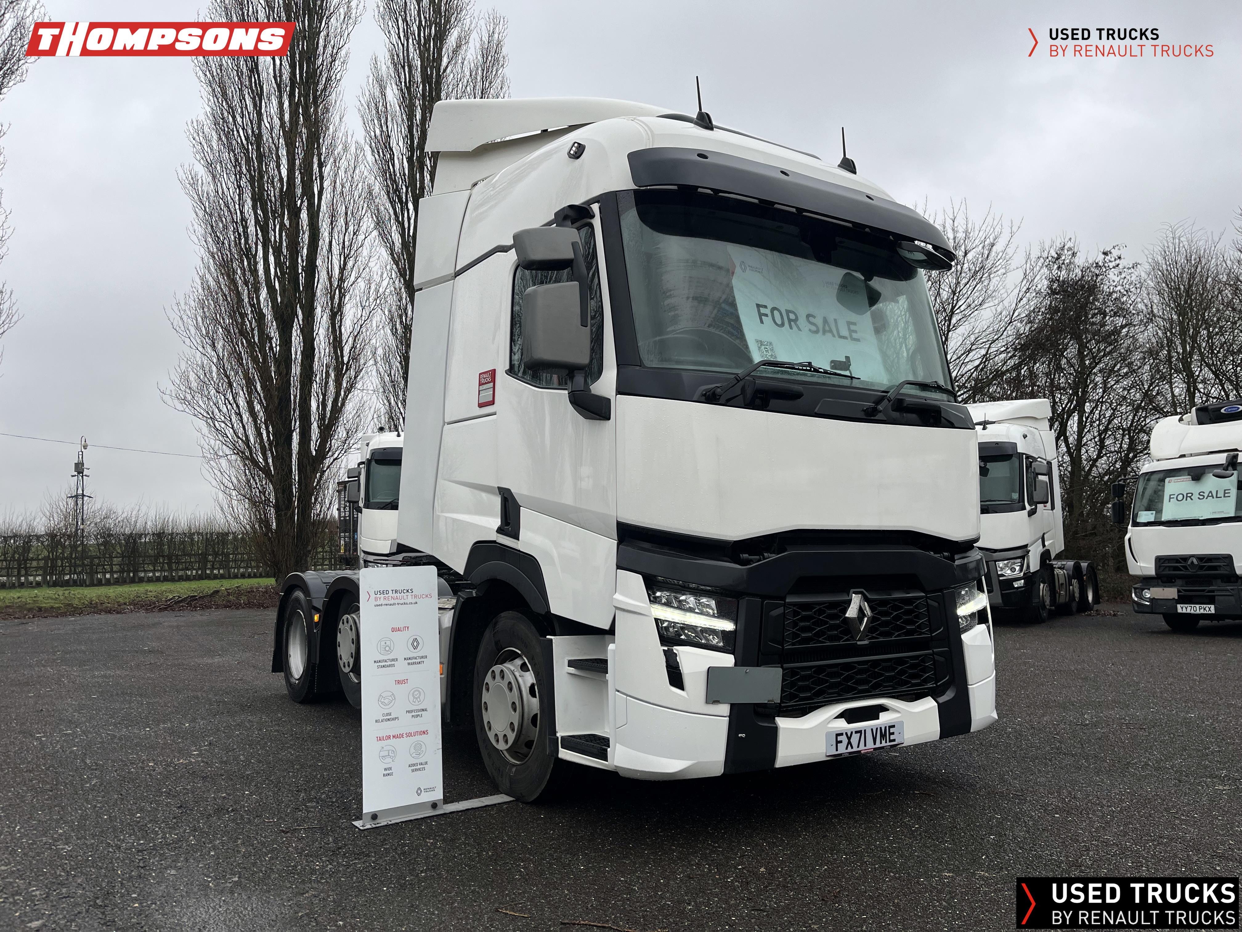 2021 (71) Renault T 480 Evolution TML 6x2 Tractor Unit, with just 712,625kms. Sleeper Cab, 13 LTR 480 BHP Euro 6 Engine & Automatic Gearbox, Engine Brake, Fridge Fitted in Under Bunk Draw , Sunvisor, Cruise Control with Optiroll, Lane Departure Warning System, Emergency Brake Assist, Electronically Regulated Comfort Air Conditioning, Electric Windscreen Sunblind, LED Cab Lighting, FM/DAB+ Radio with Bluetooth, 12/24V Sockets, Sliding 5th Wheel.