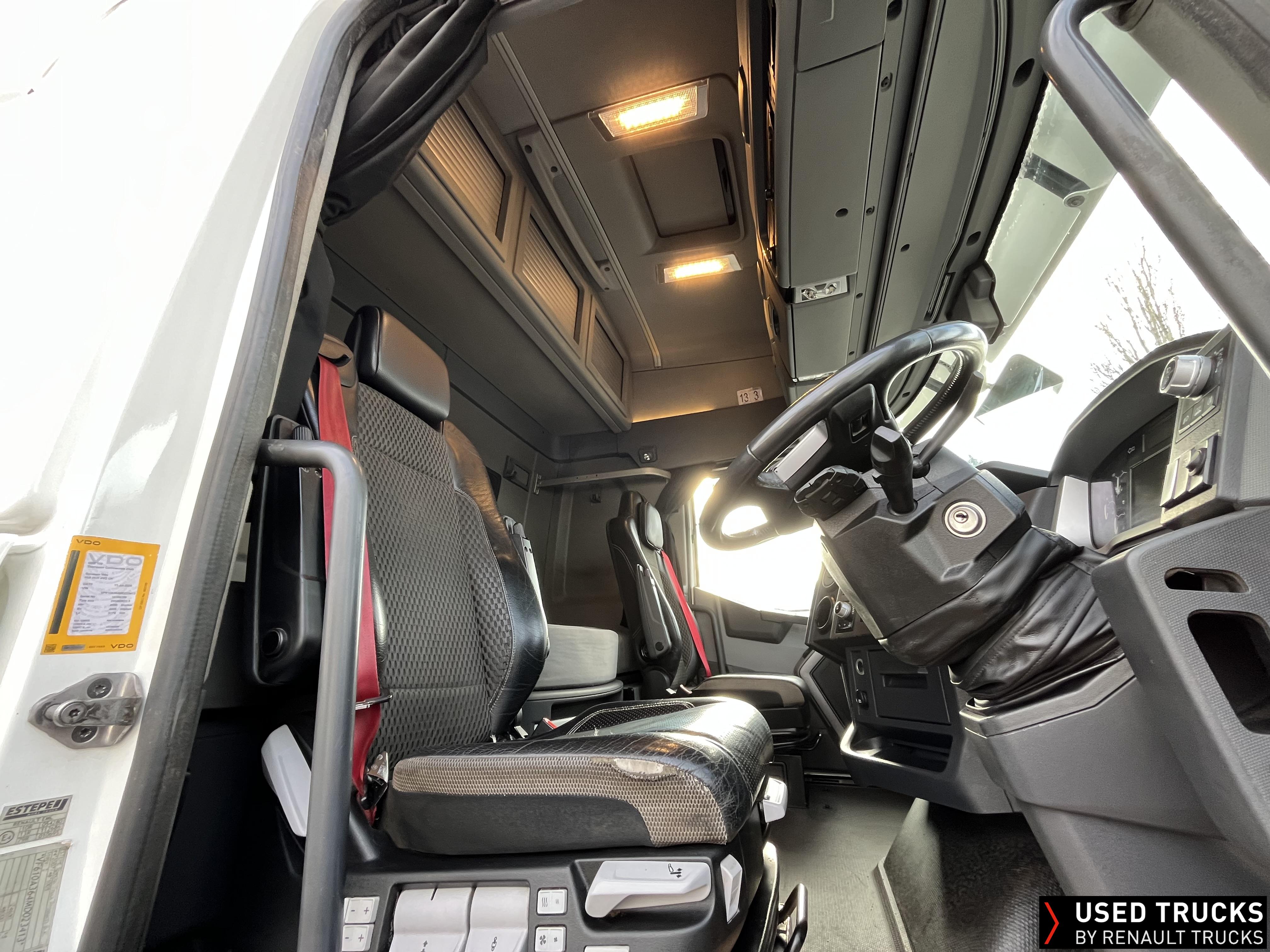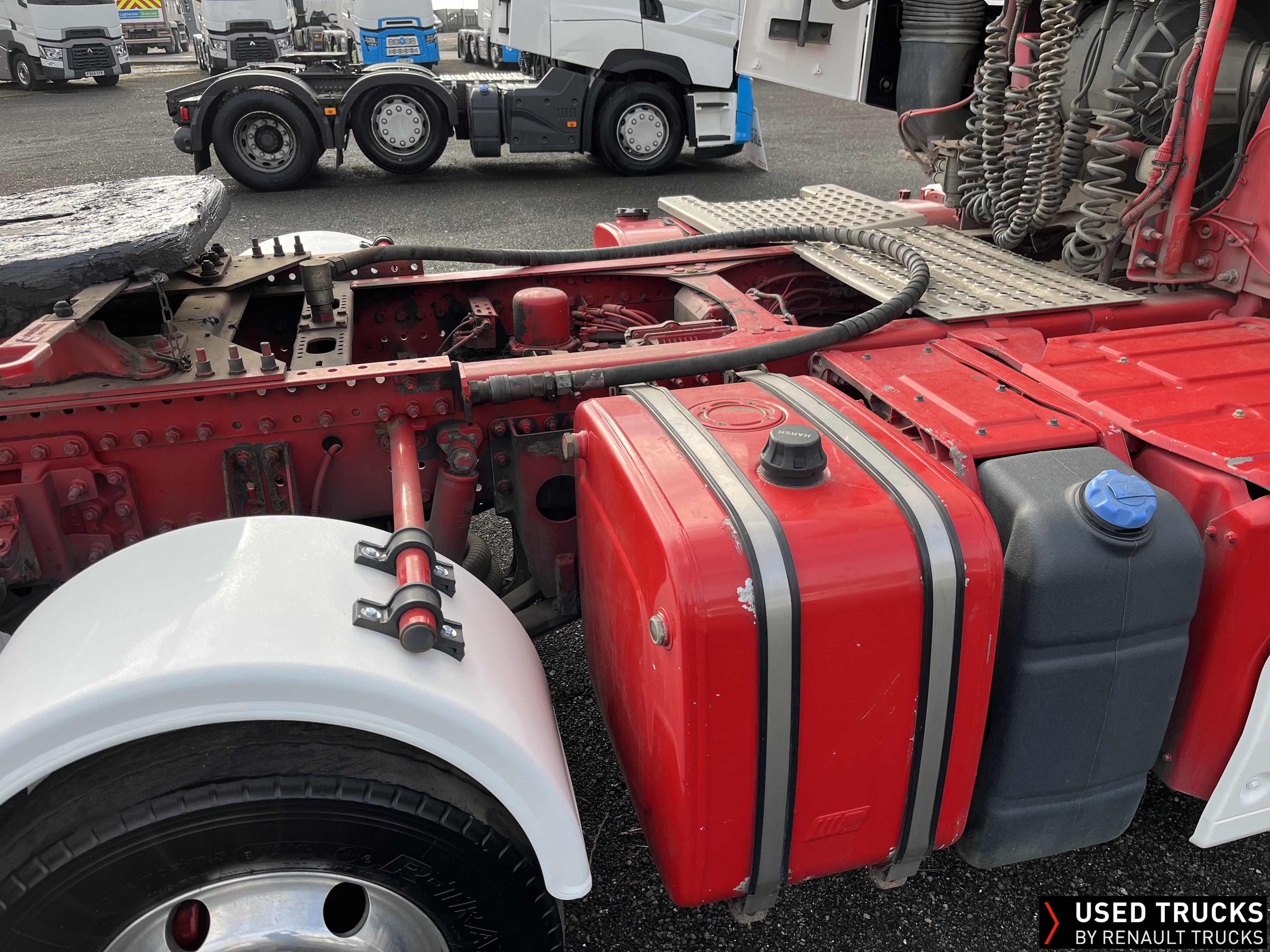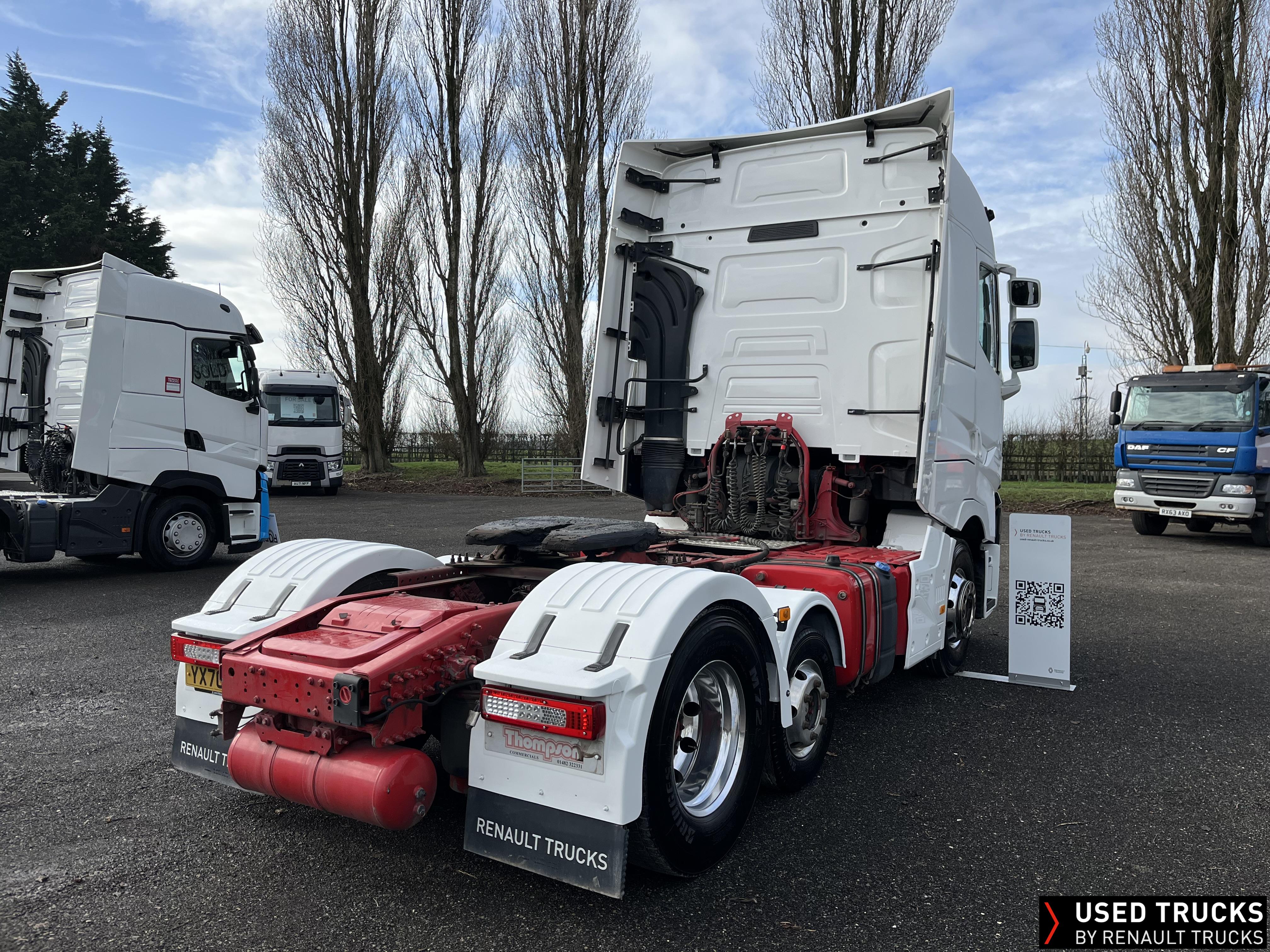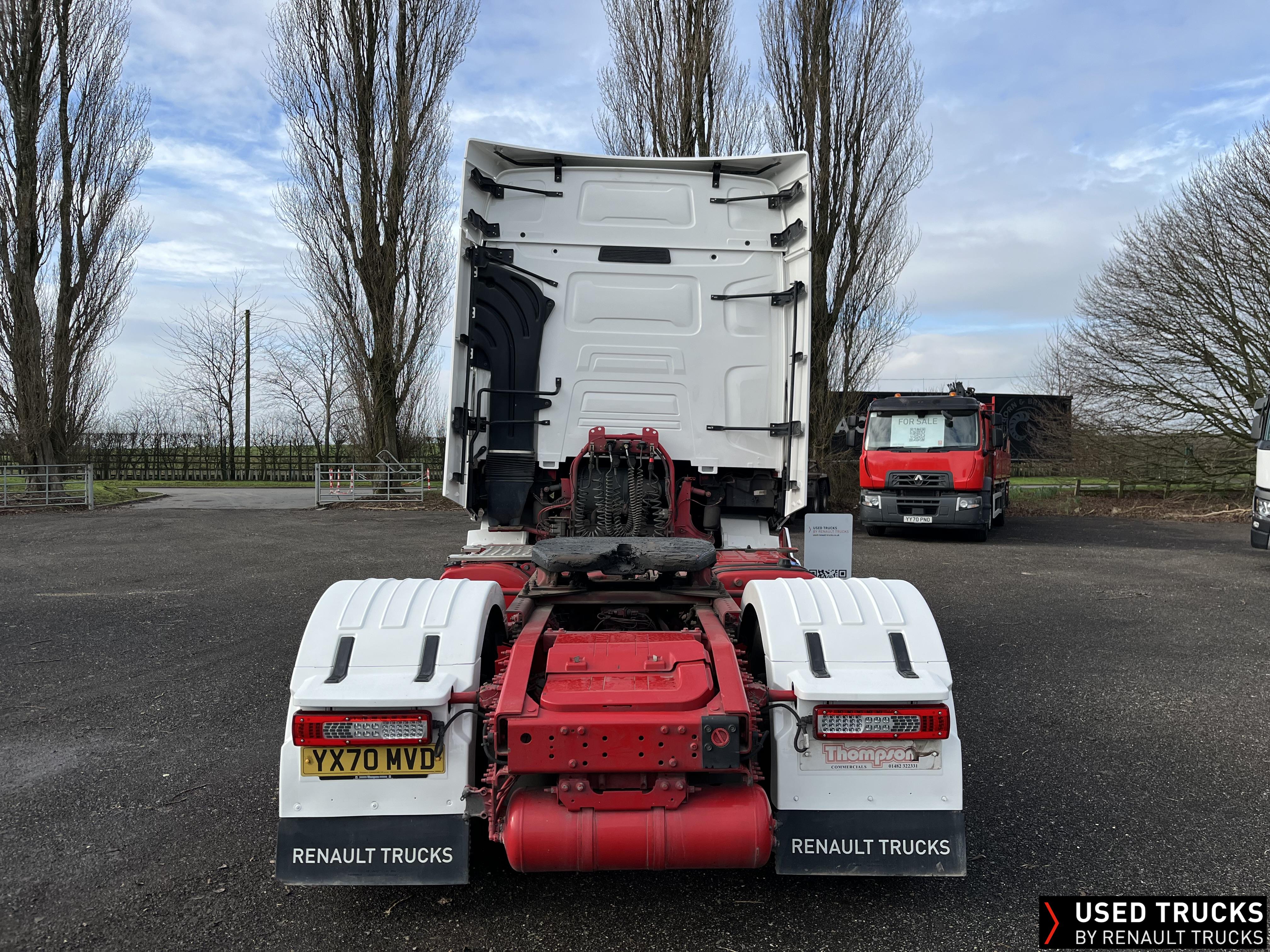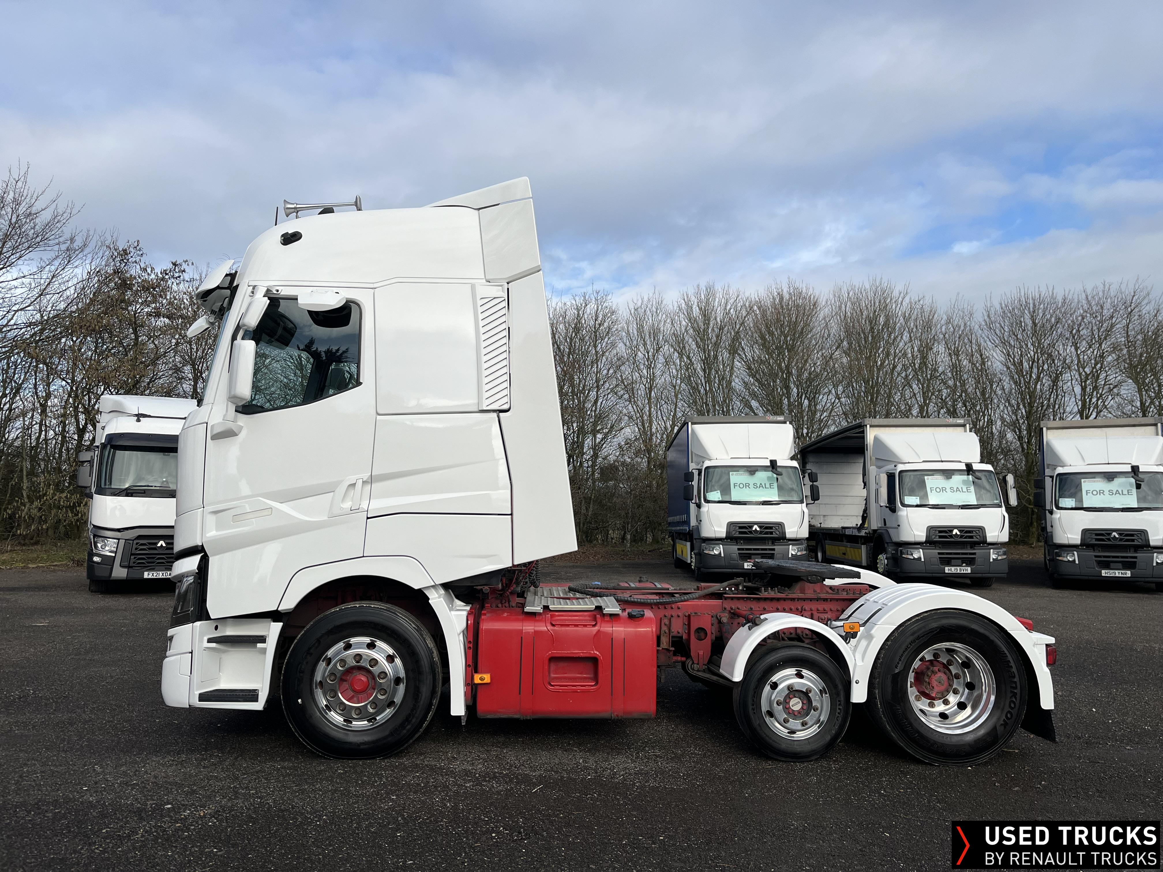 2020 (70) Renault T HIGH 520.26 TML 6x2 Tractor Unit, With just 490,173kms. T HIGH Flat Floor Sleeper Cab, 13 LTR 520 BHP Euro 6 Engine & Automatic Gearbox, Engine Brake, 4-Point Cab Air Suspension, Sun visor, Cruise Control with Optiroll, Lane Departure Warning System, Emergency Brake Assist, Electronically Regulated Comfort Air Conditioning, Full Air Deflector Kit, Electric Windscreen Sunblind, Invertor, Drawer under Bunk with 40 Litre Fridge, LED Cab Lighting, Remote Control in Bunk Area for Cab Controls, FM/DAB+ Radio with Bluetooth, USB Port & Jack Socket, 4 Loudspeakers & 2 Tweeters. One-Touch Electric Windows, 12/24V Sockets, Fixed 5th Wheel, LED Rear Lights, LED Day Running Lights & LED Work Light, Front Fog Lights, Automatic Lights & Wipers. Fitted with Harsh Tipping Hydraulics, Alcoa Alloy Wheels